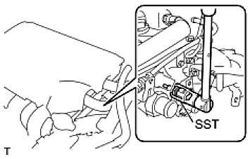 (b) Using SST, tighten the engine coolant temperature sensor.