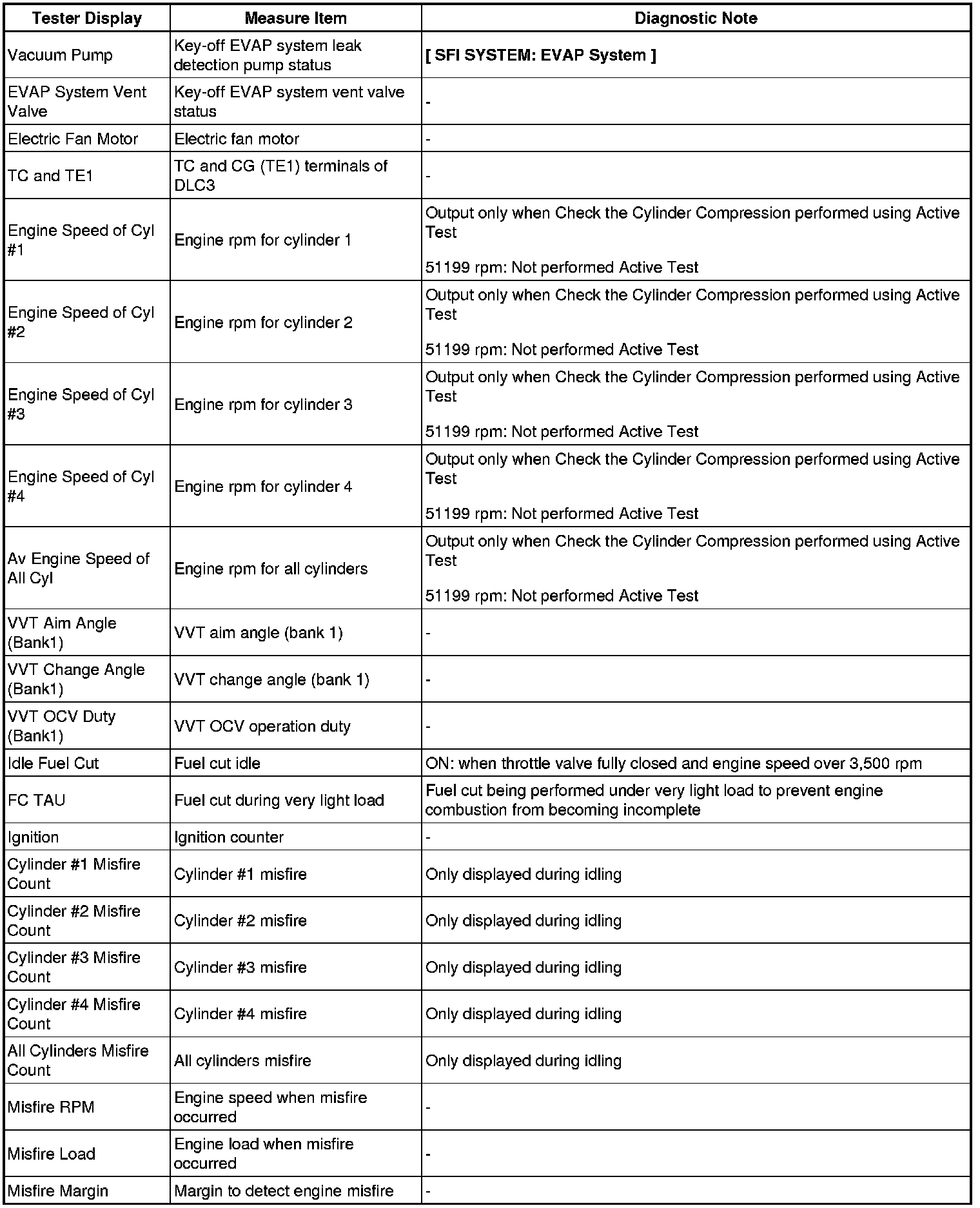 2. LIST OF FREEZE FRAME DATA