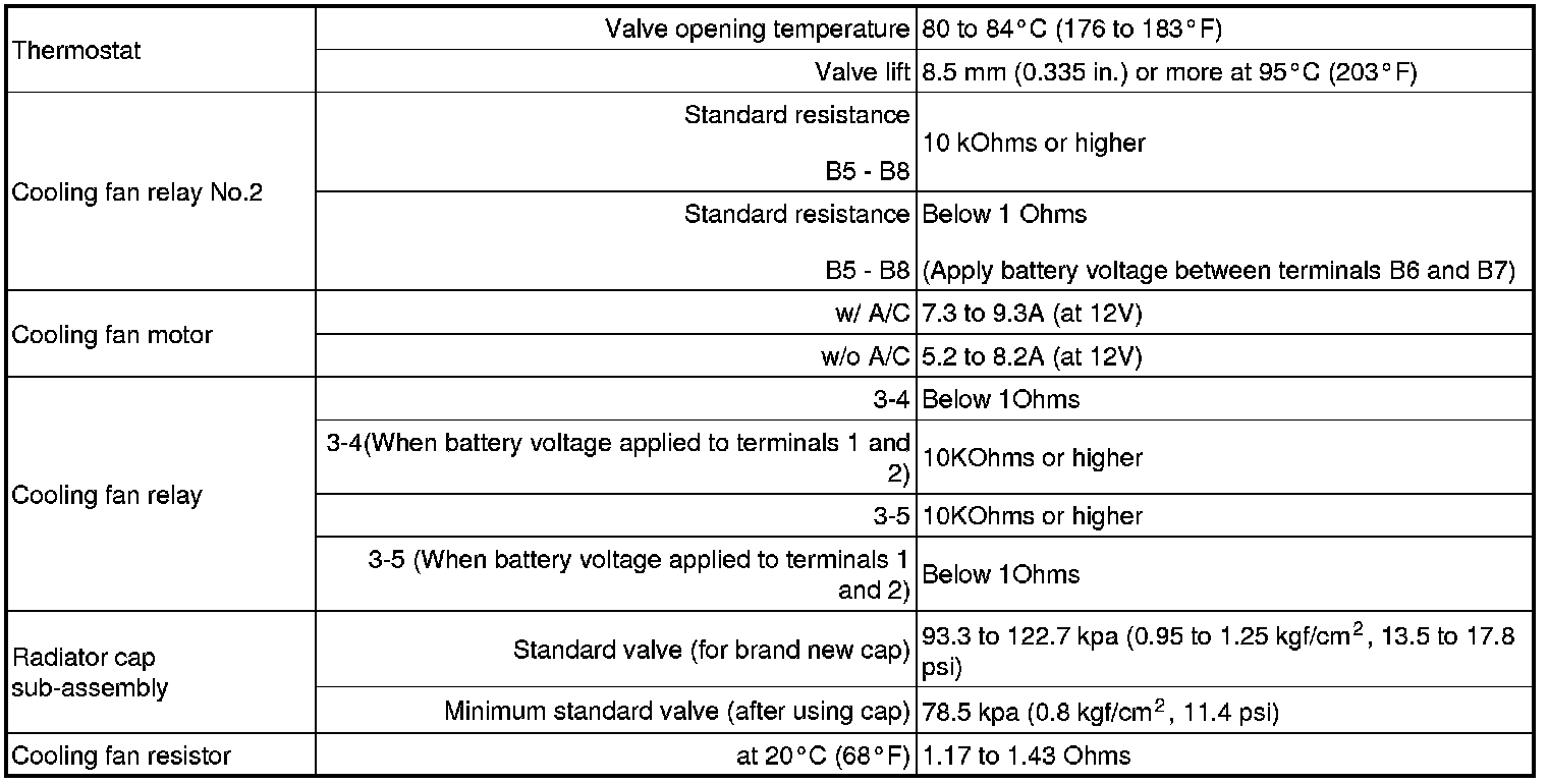 SERVICE SPECIFICATIONS: 1NZ-FE COOLING: