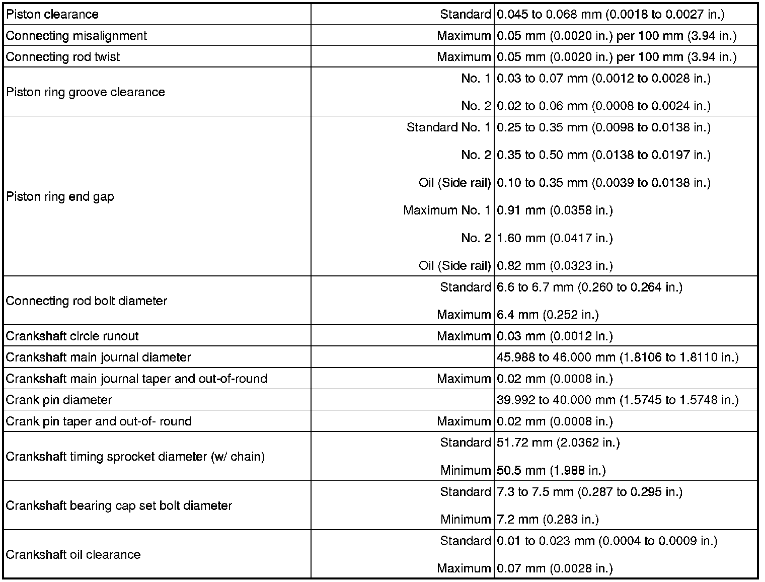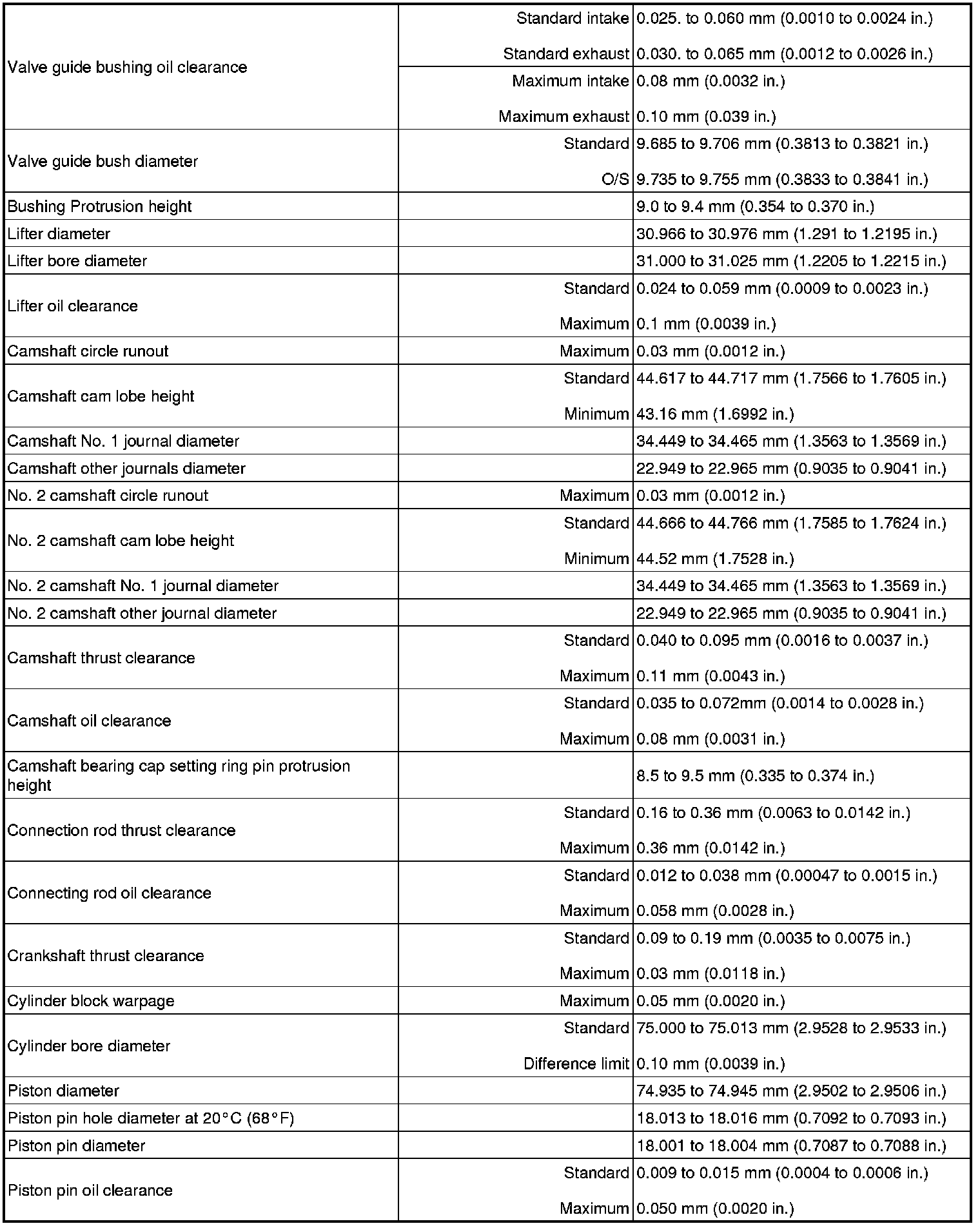 SERVICE SPECIFICATIONS: 1NZ-FE ENGINE MECHANICAL:
