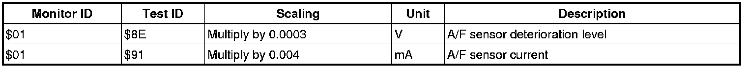 If you use a generic scan tool, multiply the test value by the scaling value listed below.