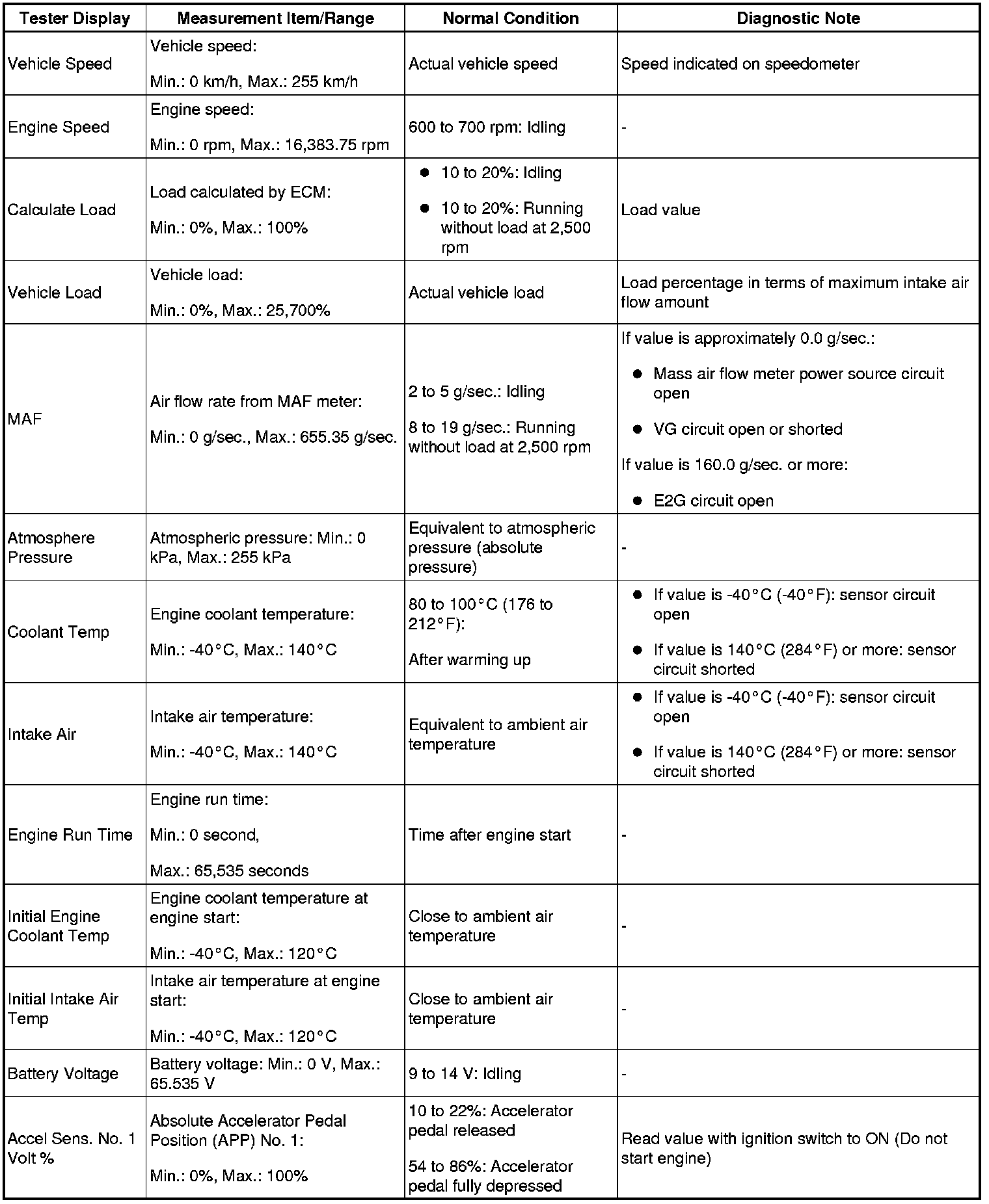HINT: By reading the Data List displayed on Techstream, you can check values, including those of the switches, sensors, and actuators, without removing any parts. Reading the Data List as the first step in troubleshooting is one method of shortening diagnostic time.