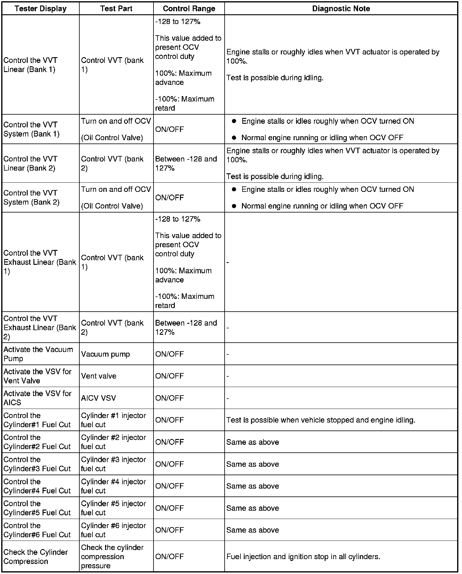 - *: Data List values are displayed only when performing the following Active Tests: Control the VVT Linear (Bank1), Control the VVT Linear (Bank2), Control the VVT Exhaust Linear (Bank1) and Control the VVT Exhaust Linear (Bank2). For other Active Tests, the Data List value will be 0.