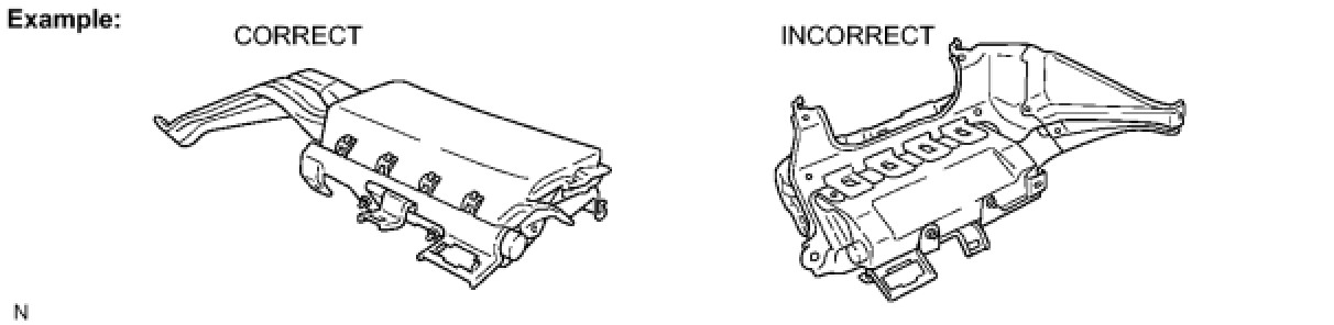 (1) Always place a removed or new front passenger airbag assembly with the airbag inflation direction facing up.
