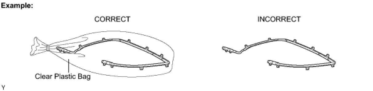 (1) Always place the removed or new curtain shield airbag assembly in a clear plastic bag, and keep it in a safe place.