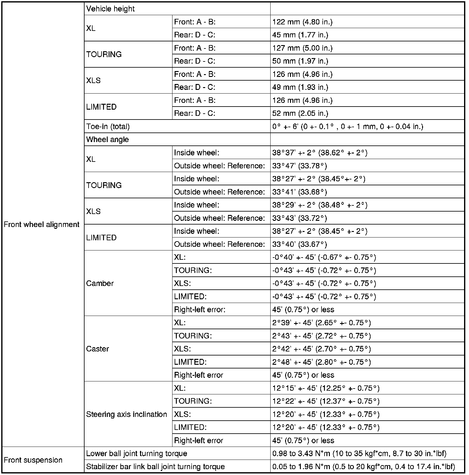 SERVICE SPECIFICATIONS: SUSPENSION: SERVICE DATA