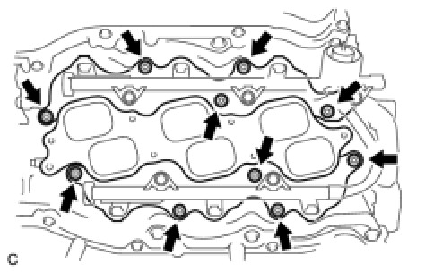 INTAKE MANIFOLDInstall and tighten the 6 bolts and 4 nuts uniformly in several steps.