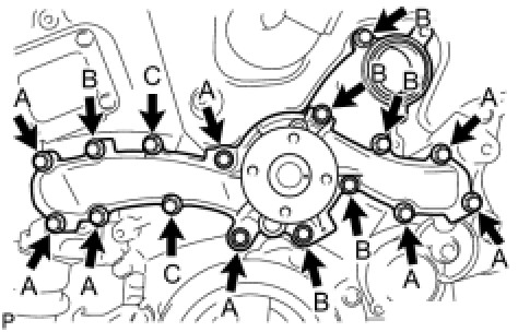 Bolts B and C - Torque 11 Nm (112 kgf-cm, 8 in-lbf)