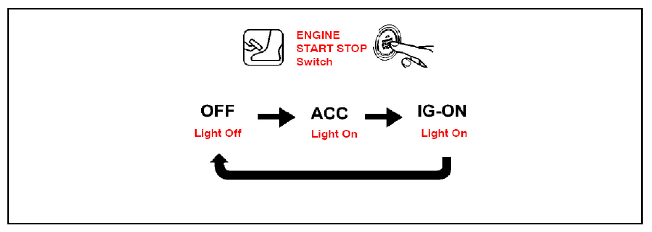 - Press the Engine Start/Stop switch once and check that the indicator light goes OFF.
