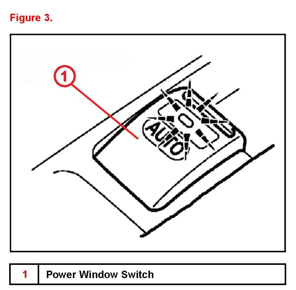2. Pull and hold up the passenger's door power window switch until the window closes. Continue holding the switch until the switch changes from blinking to a constant illumination.