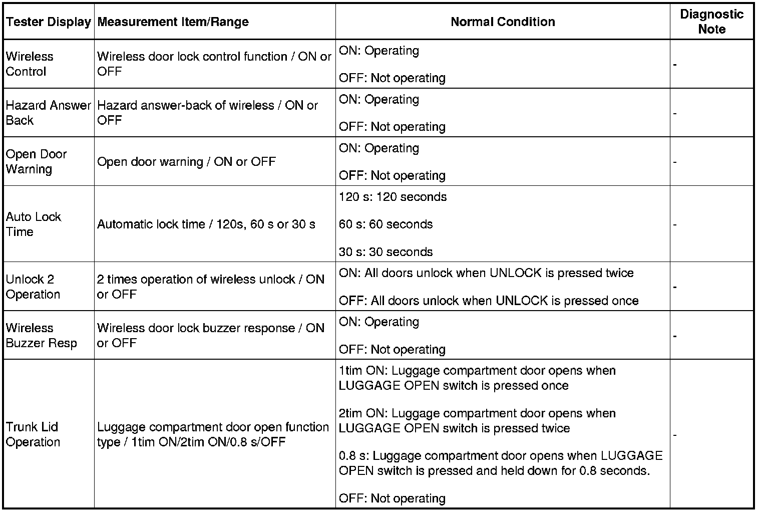 DOOR LOCK: WIRELESS DOOR LOCK CONTROL SYSTEM (w/ Smart Key System): DATA LIST / ACTIVE TEST