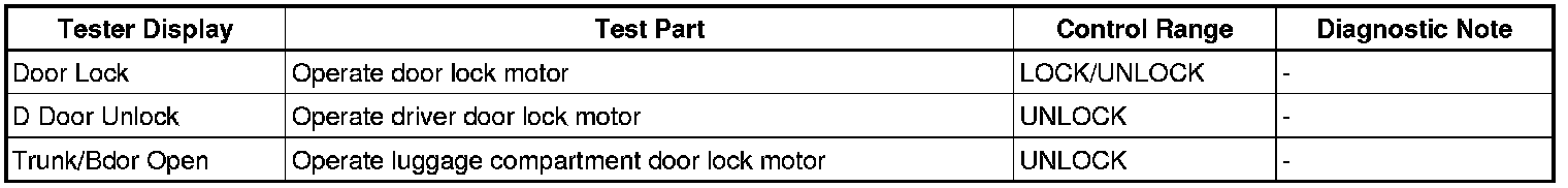 DOOR LOCK: POWER DOOR LOCK CONTROL SYSTEM: DATA LIST / ACTIVE TEST