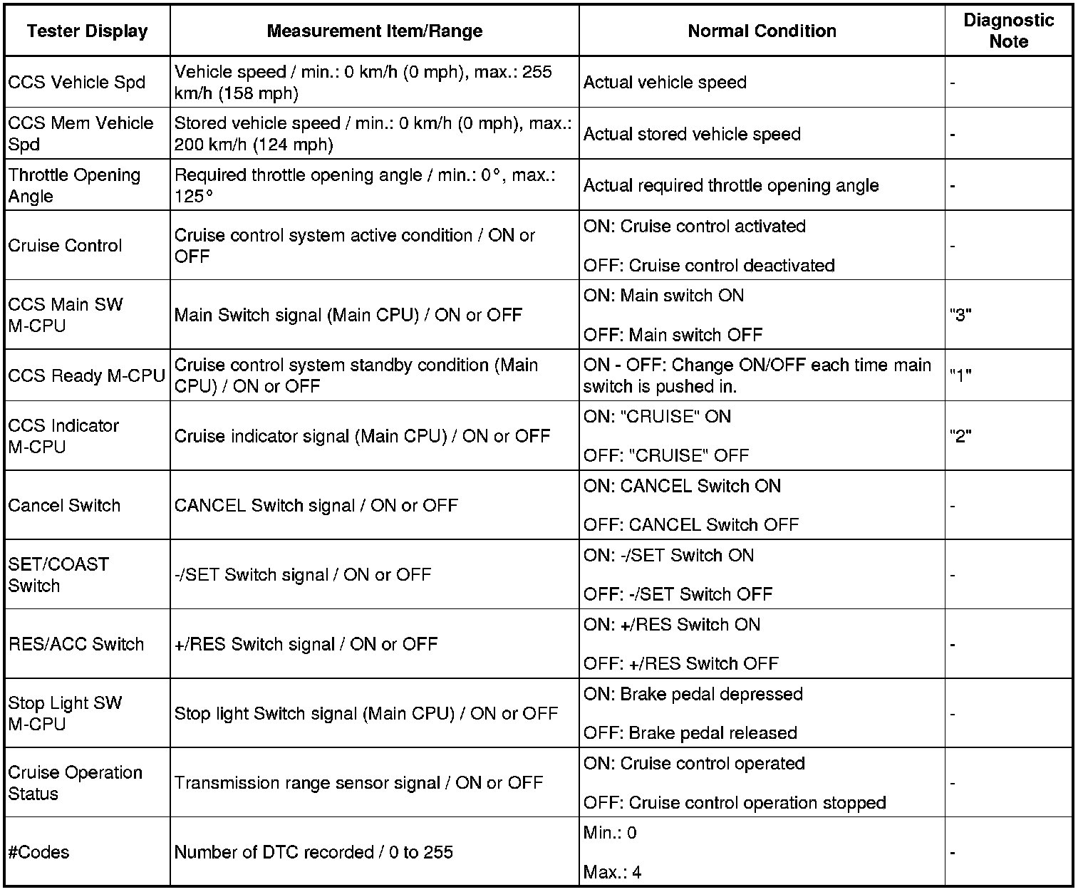 CRUISE CONTROL: CRUISE CONTROL SYSTEM: DATA LIST / ACTIVE TEST