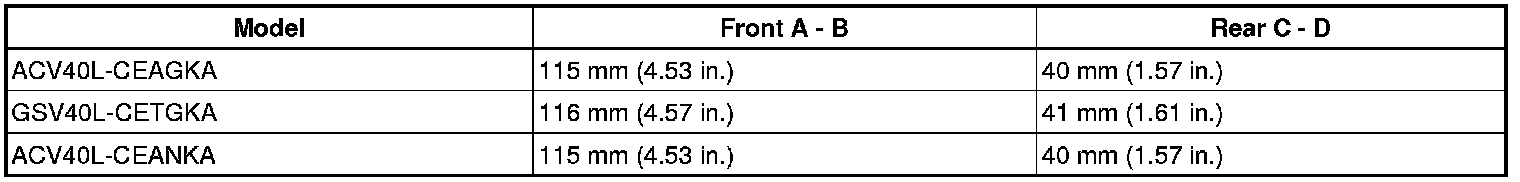The body and suspension may be damaged if the camber is not correctly adjusted according to the above table.