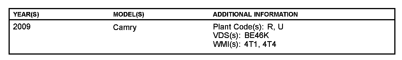 Some 2009 model year NAP produced Camry vehicles equipped with the 2AZ-FE engine may exhibit a M.I.L. "ON" condition with the following Diagnostic Trouble Code (DTC):