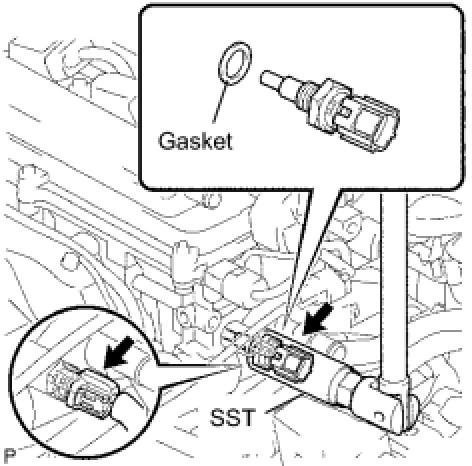 (b) Using SST, remove the engine coolant temperature sensor and gasket.