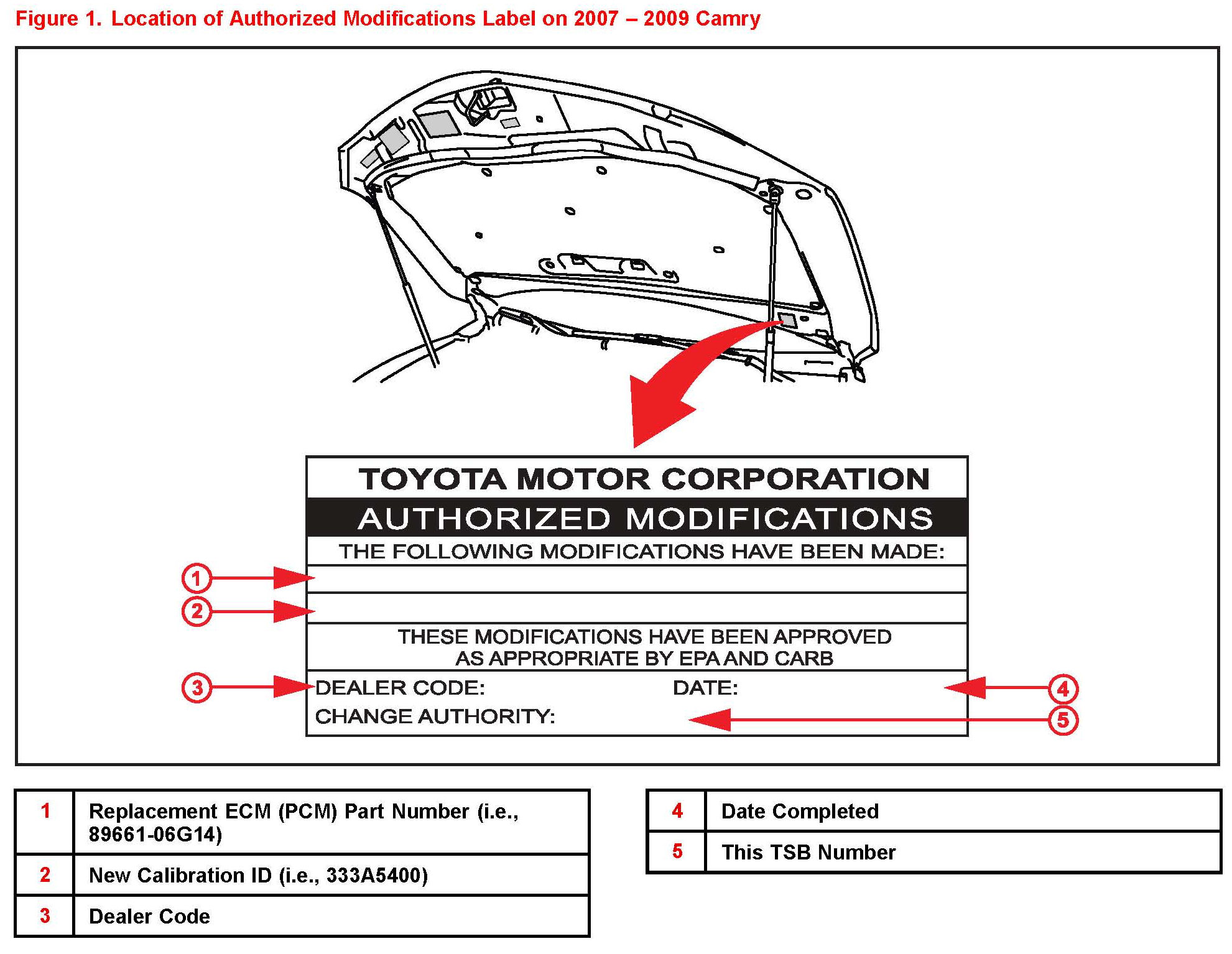 Some 2007 - 2009 model year Camry vehicles with a 2AZ-FE engine may exhibit a MIL "ON" condition with Diagnostic Trouble Code (DTC) P0456 - Evaporative Emission Control System Leak Detected (Very Small Leak). The Engine Control Module/ECM (SAE term: Powertrain Control Module/PCM) logic has been modified to reduce the possibility of this condition occurring. Use the following repair procedure to address this condition.