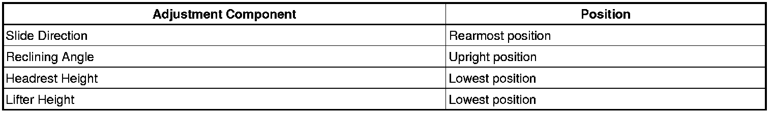 (2) Adjust the seat position according to the table below.