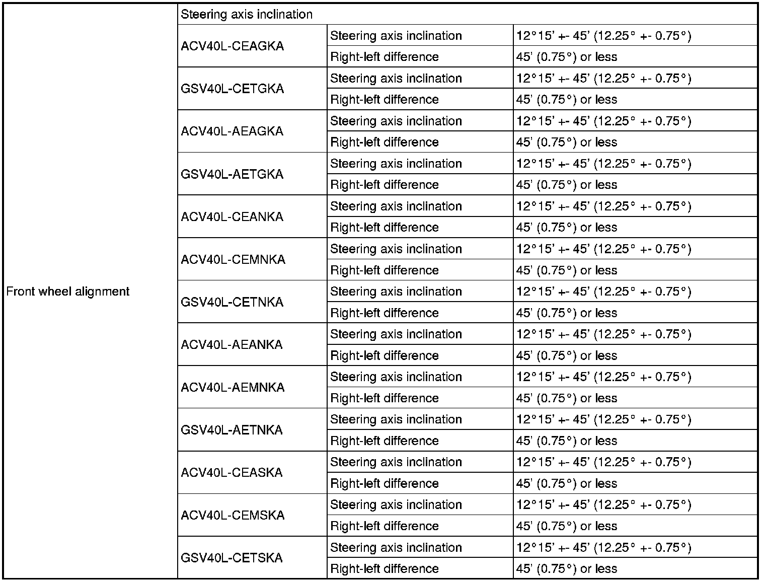 SERVICE SPECIFICATIONS: SUSPENSION: SERVICE DATA