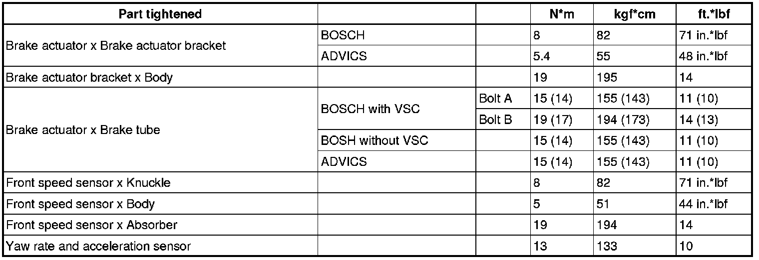 SERVICE SPECIFICATIONS: BRAKE CONTROL: TORQUE SPECIFICATIONS