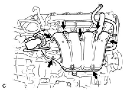 Install the intake manifold with the 5 bolts and 2 nuts.