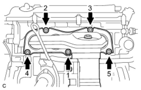 Tighten the 5 nuts in the sequence shown in the illustration.