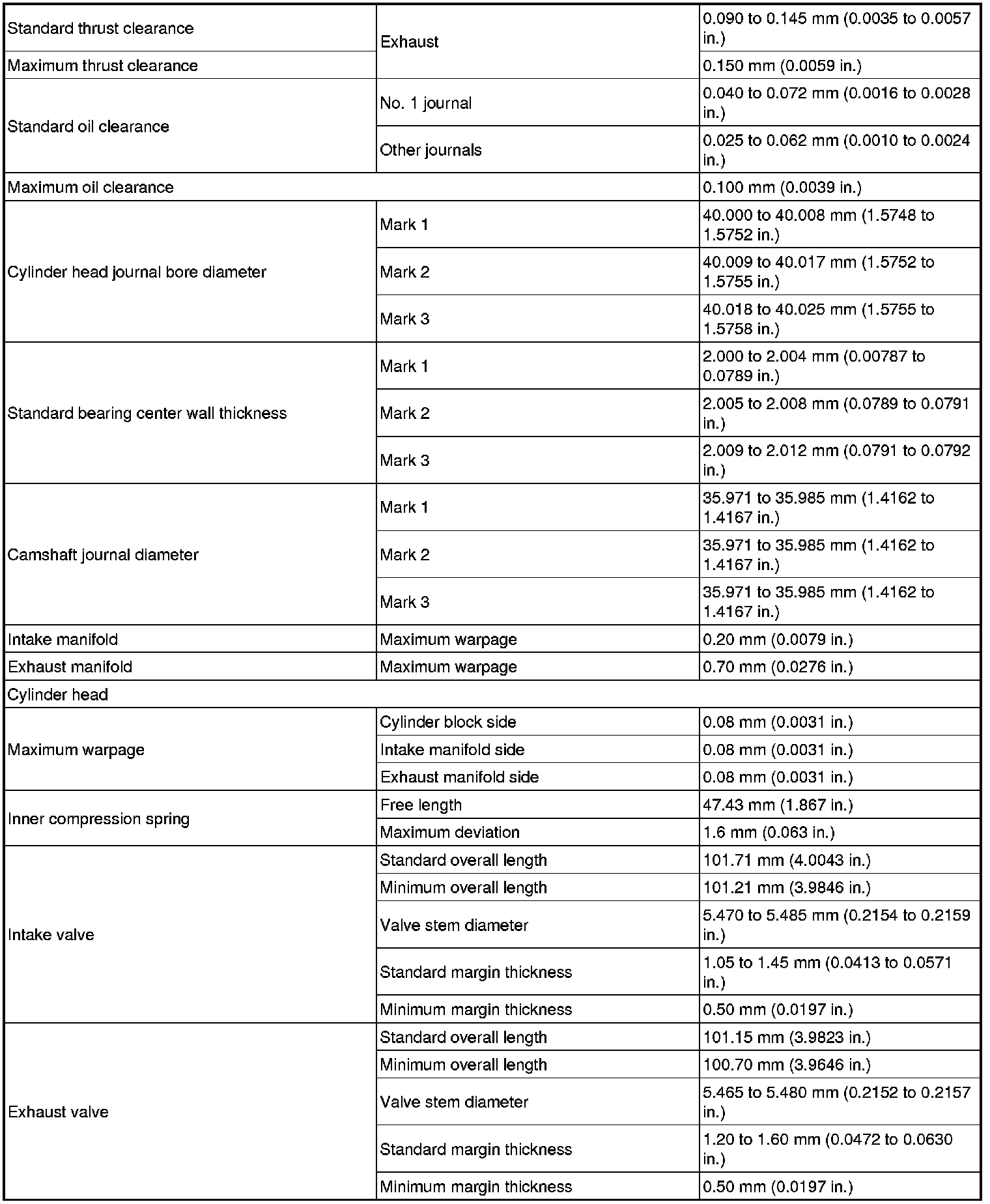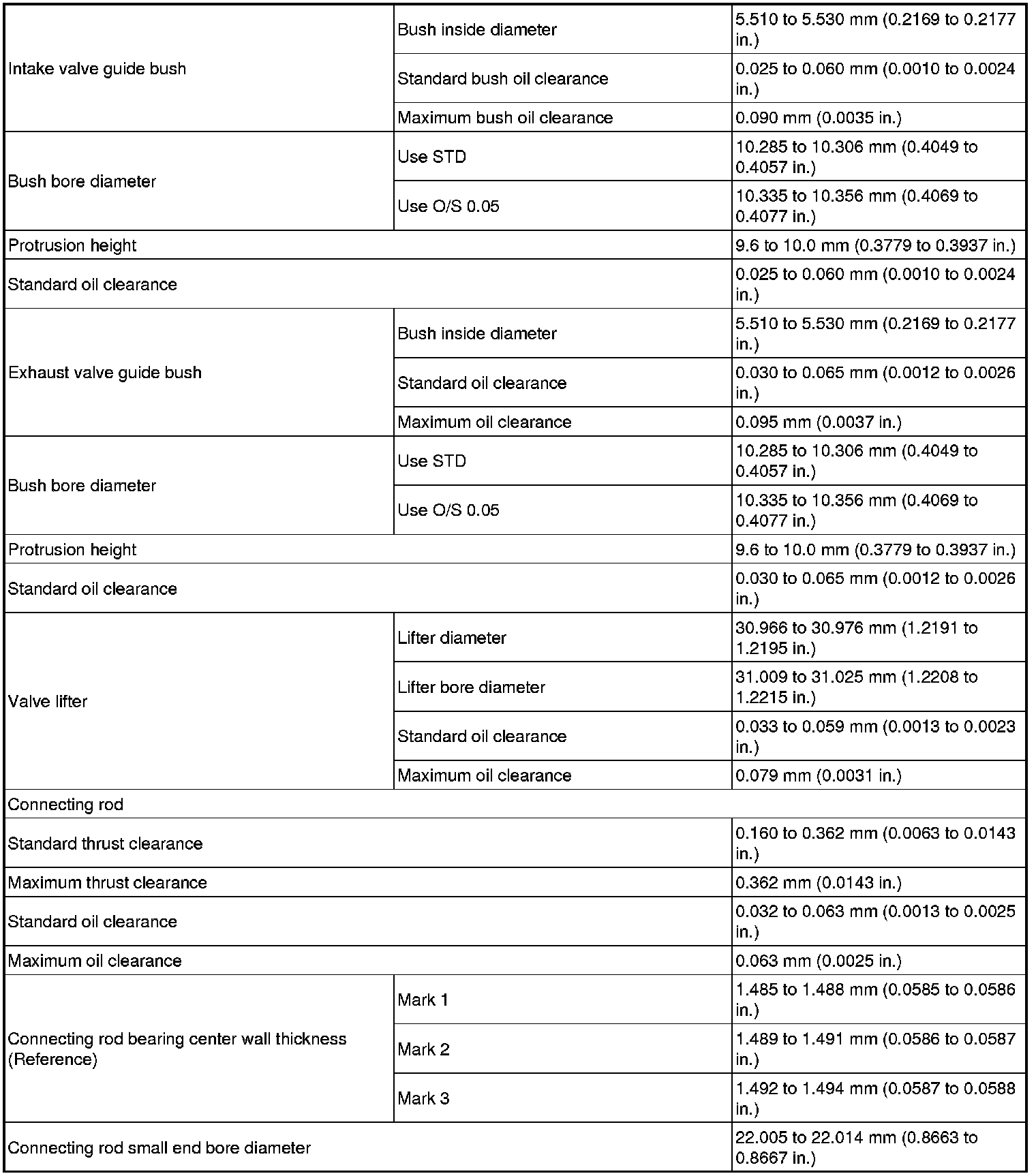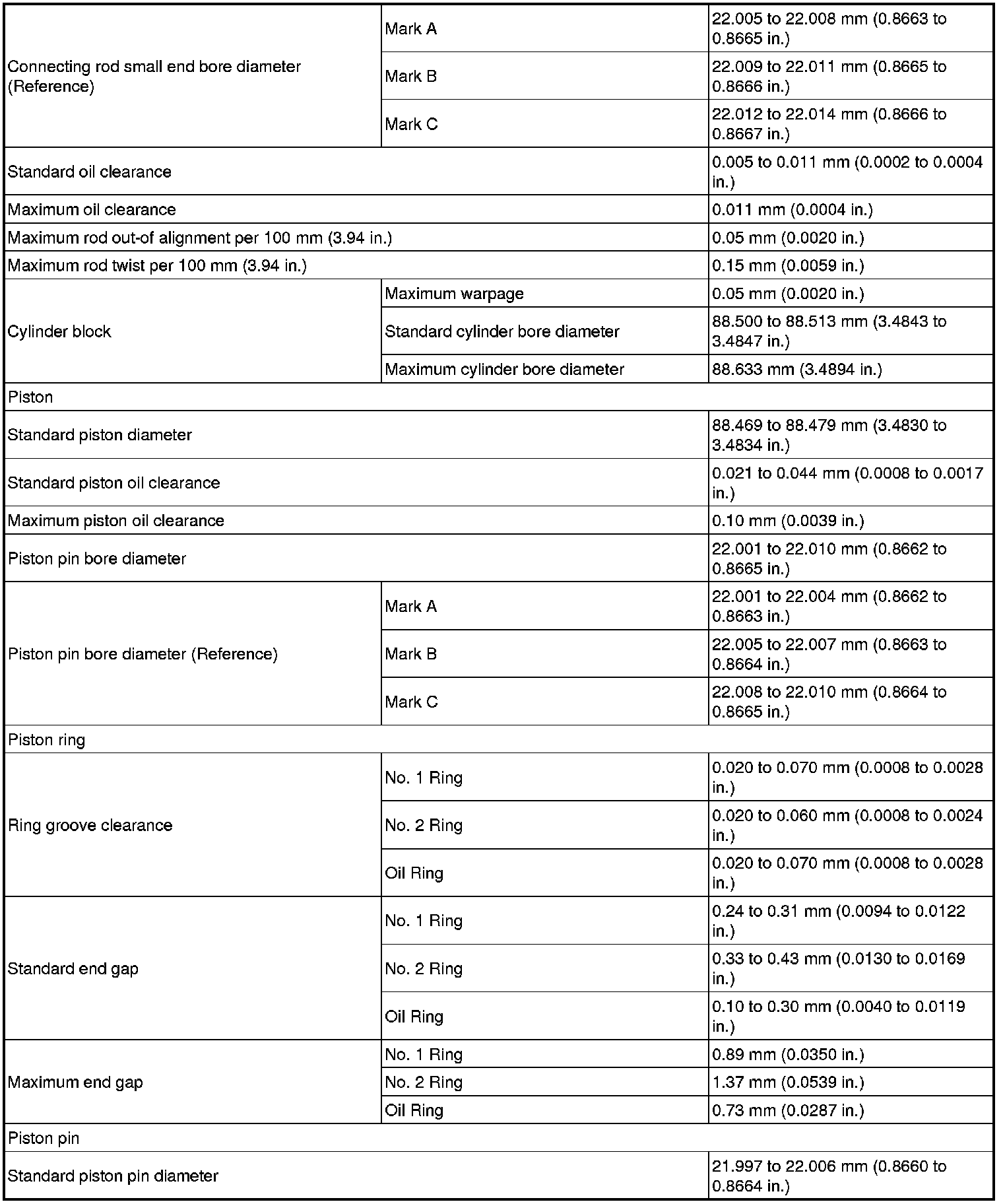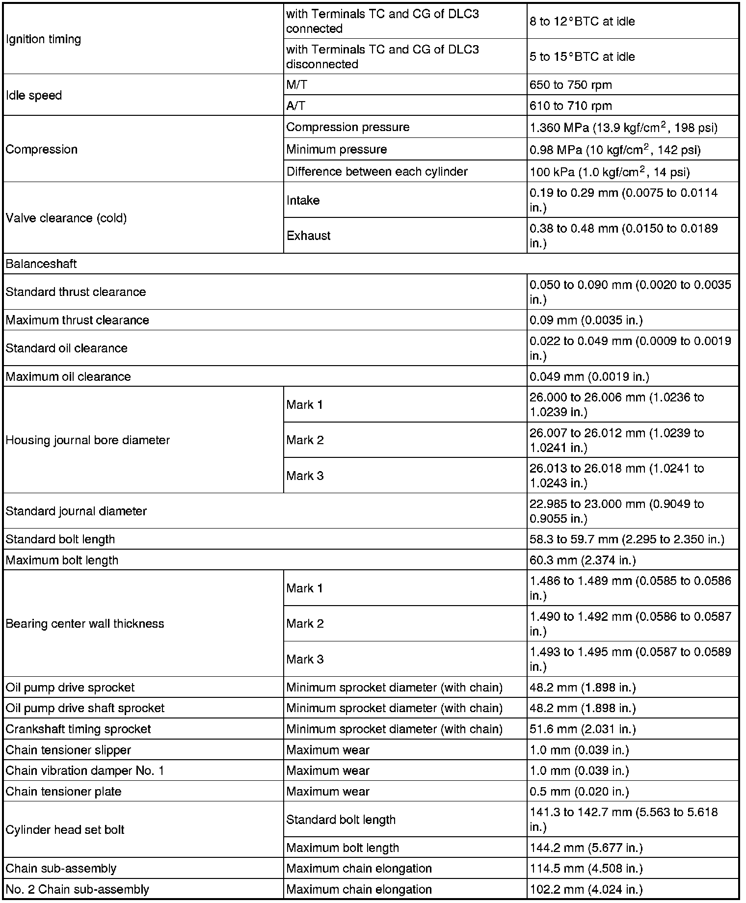 SERVICE SPECIFICATIONS: 2AZ-FE ENGINE MECHANICAL: SERVICE DATA