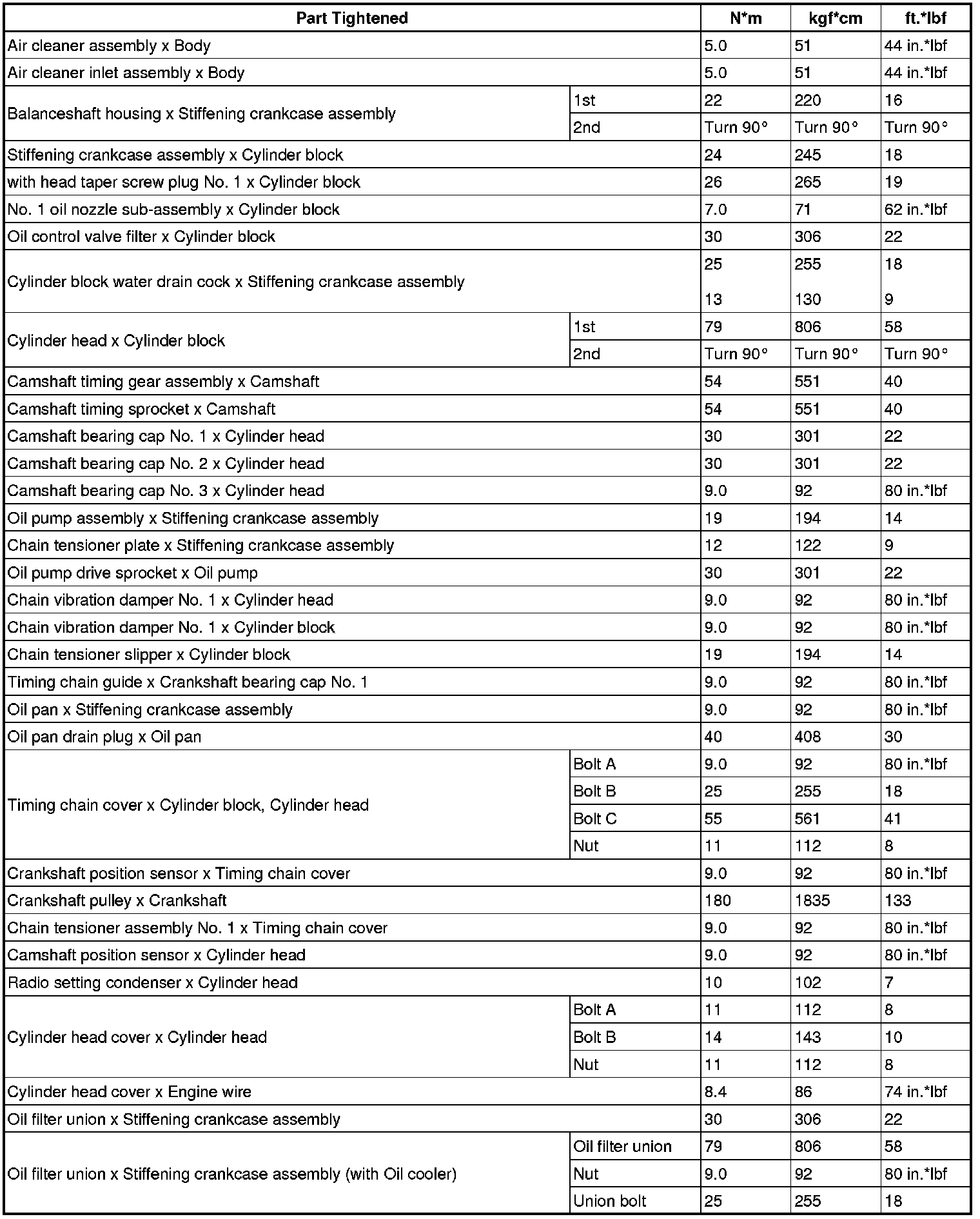 SERVICE SPECIFICATIONS: 2AZ-FE ENGINE MECHANICAL: TORQUE SPECIFICATIONS