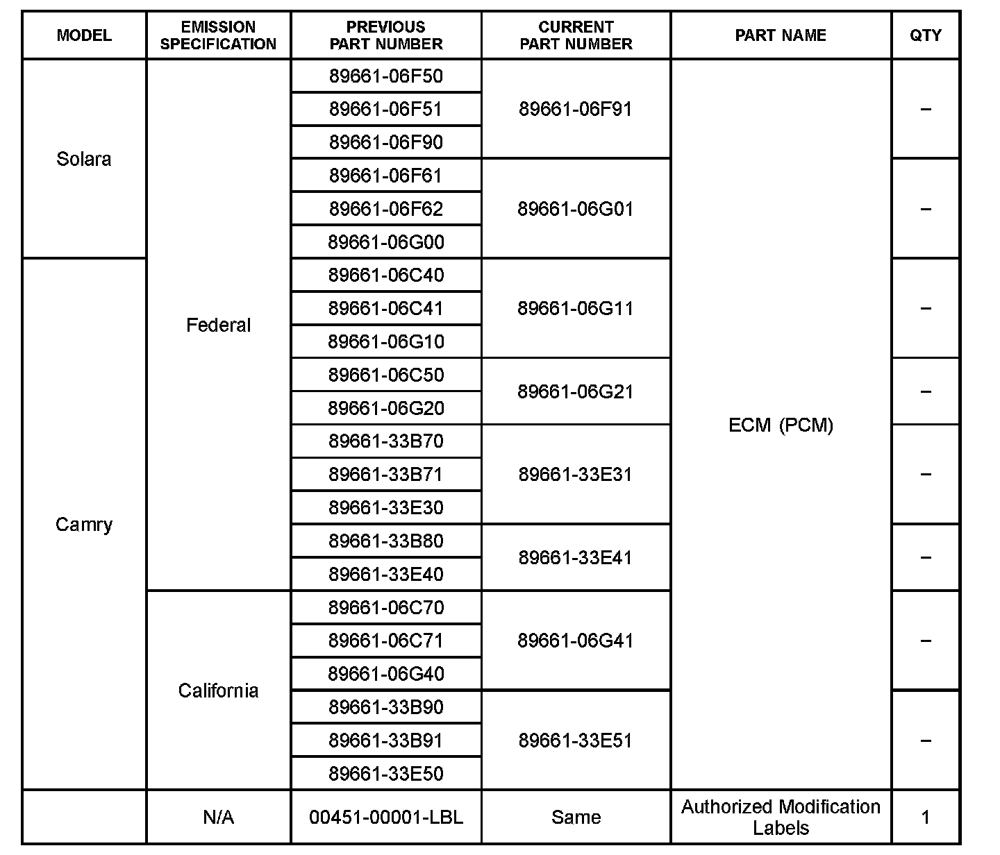 ^ Applicability has been updated to include 2007 - 2008 model year Solara and 2008 - 2009 model year Camry.