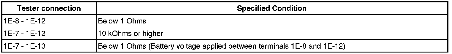 Using an ohmmeter, measure the resistance according to the value(s) in the table below.