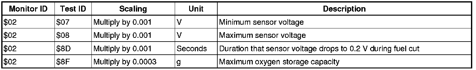 If you use a generic scan tool, multiply the test value by the scaling value listed below.