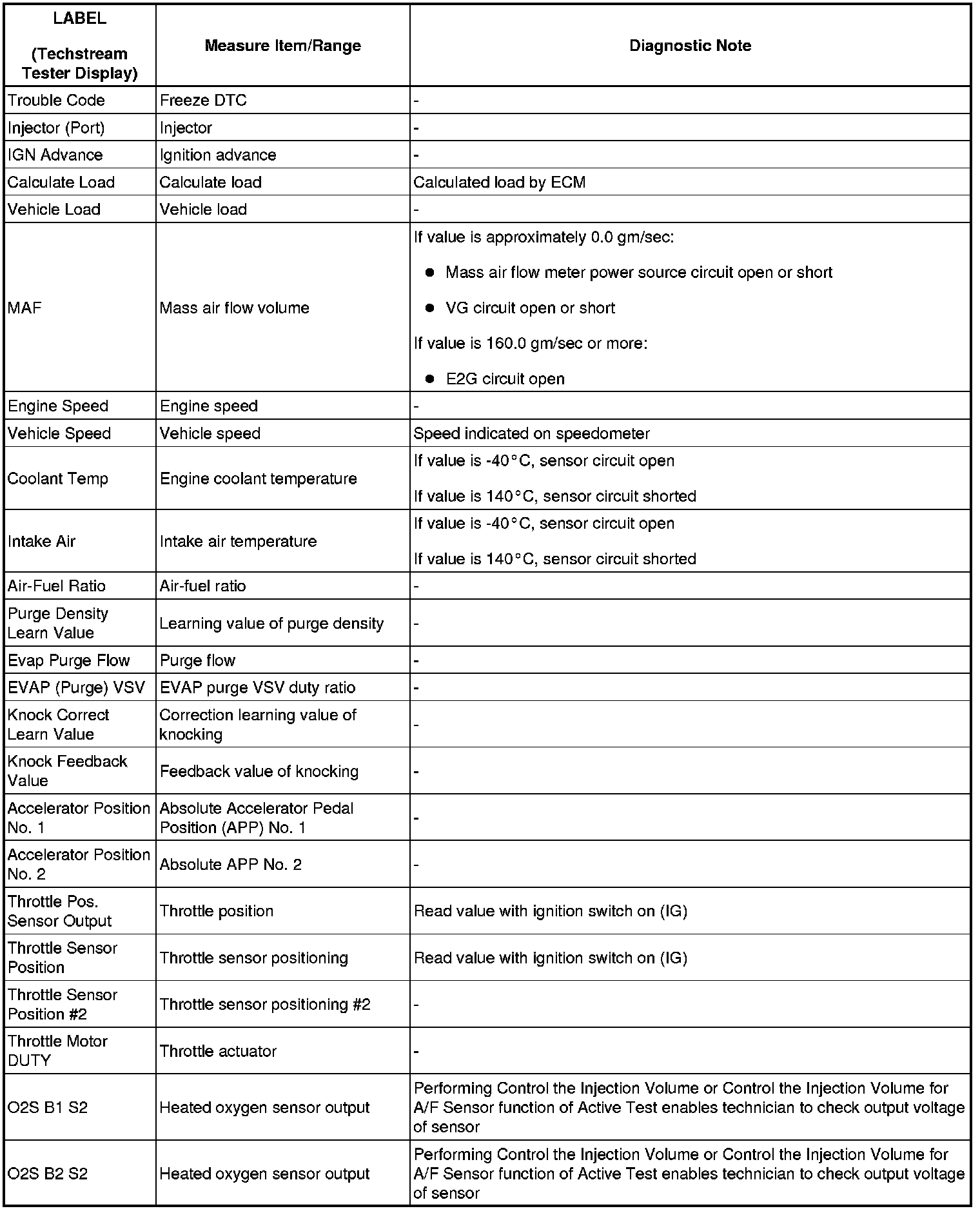 2GR-FE ENGINE CONTROL SYSTEM: SFI SYSTEM: FREEZE FRAME DATA