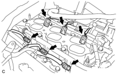 (5) Disconnect the 6 fuel injector connectors.