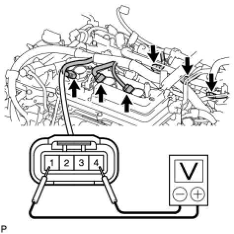 2. Measure the voltage between the terminals of the wire harness side connector.