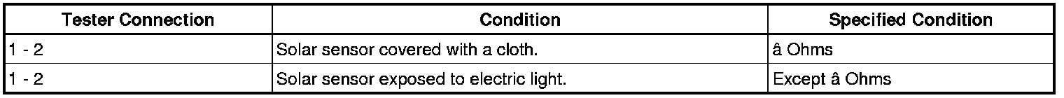 If the resistance is not as specified, replace the solar sensor.