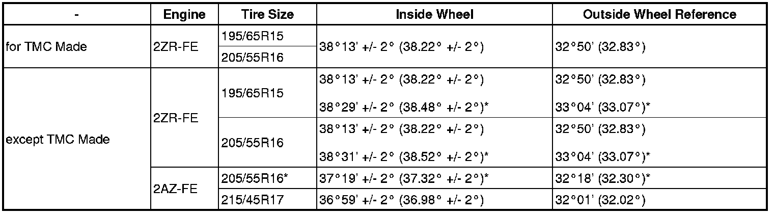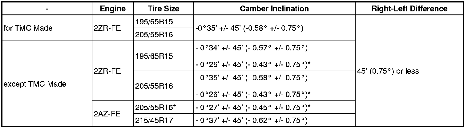 The body and suspension may be damaged if the camber is not correctly adjusted according to the table above.