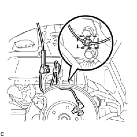 (c) Remove the clamp and separate the front speed sensor from the front shock absorber (except TMC Made).