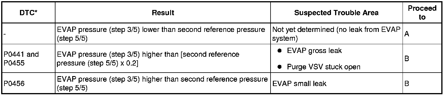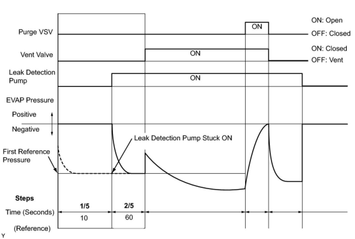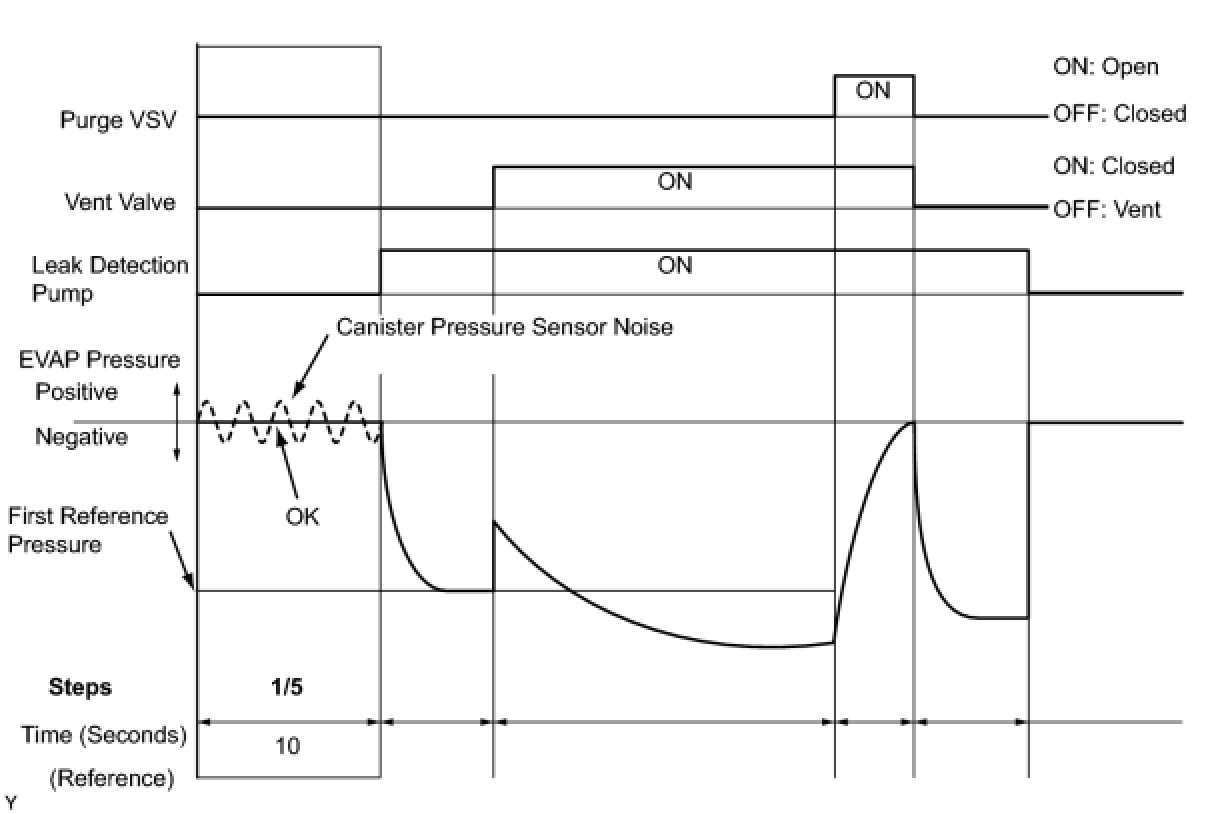 (b) Compare the EVAP pressure in step 3/5 and the second reference pressure (step 5/5).