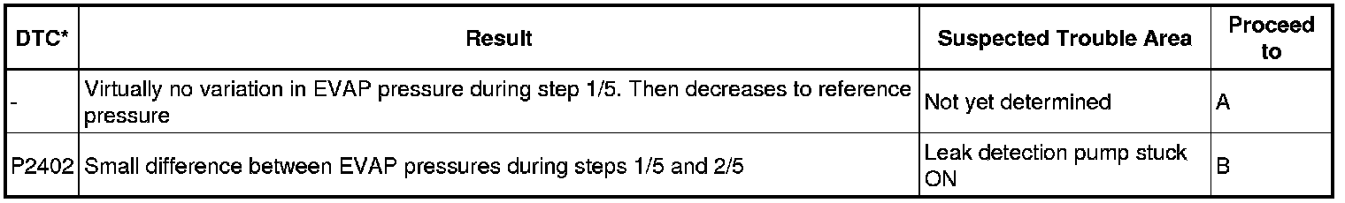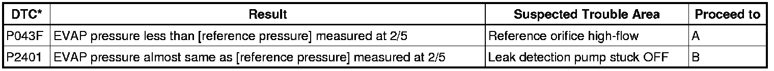 NOTE: If the reference pressure difference between the first and second checks is greater than the specification, all the DTCs relating to the reference pressure (P043E, P043F, P2401, P2402 and P2419) are stored.