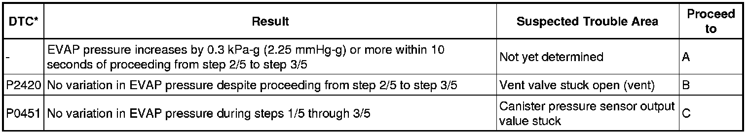 (a) Check the EVAP pressure increase in step 3/5.