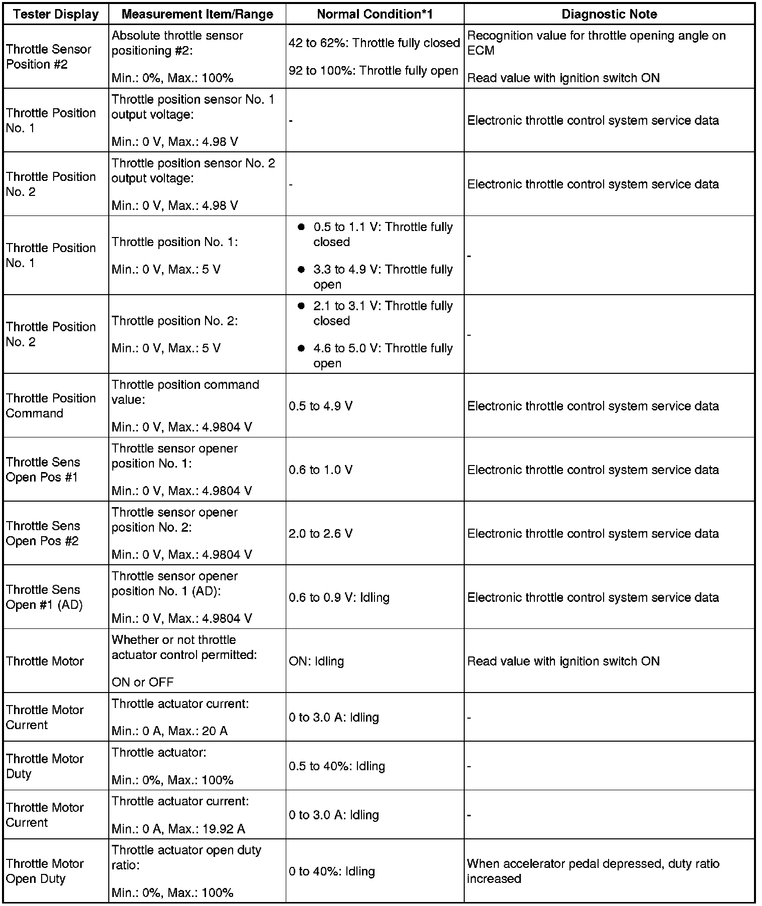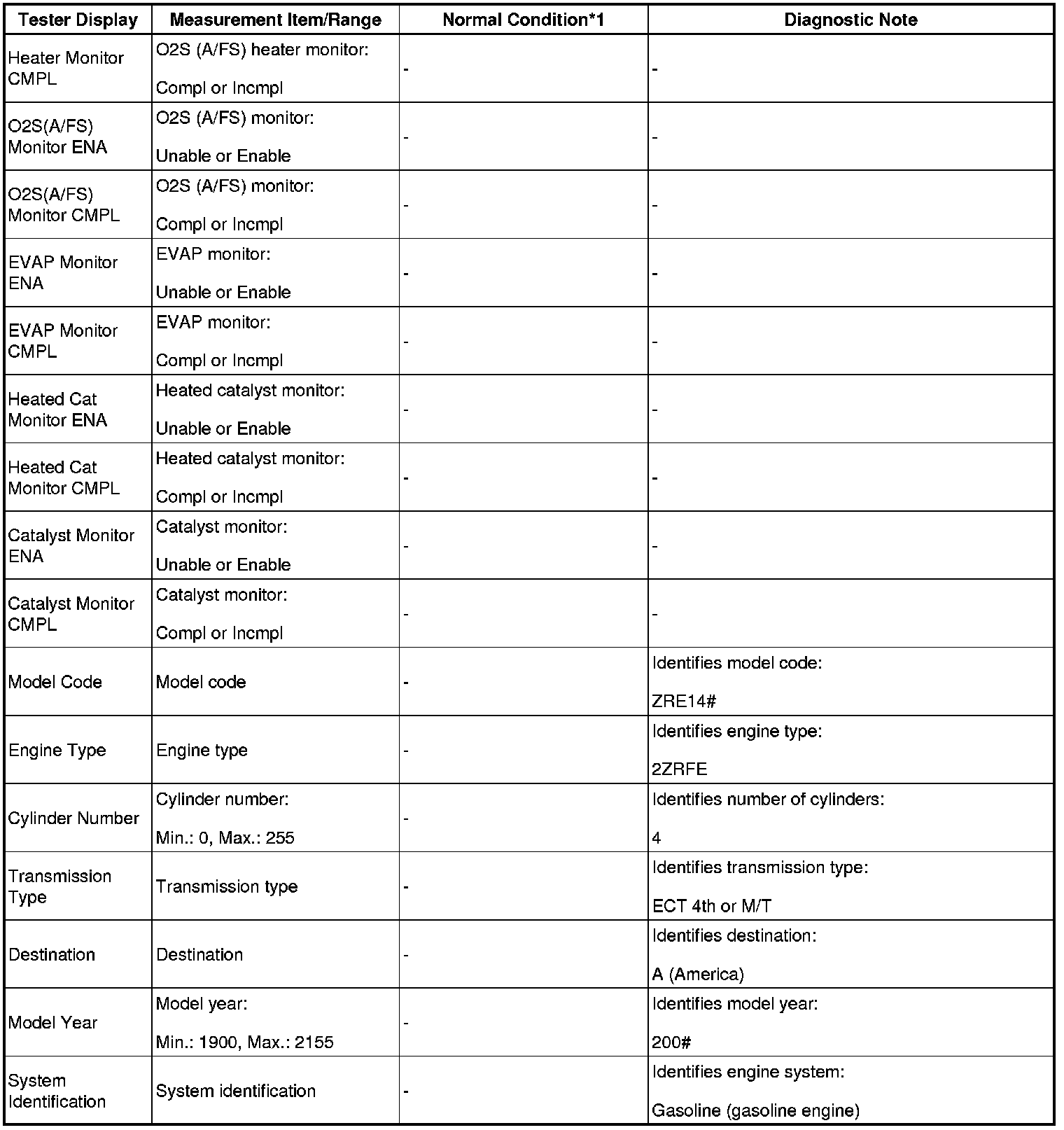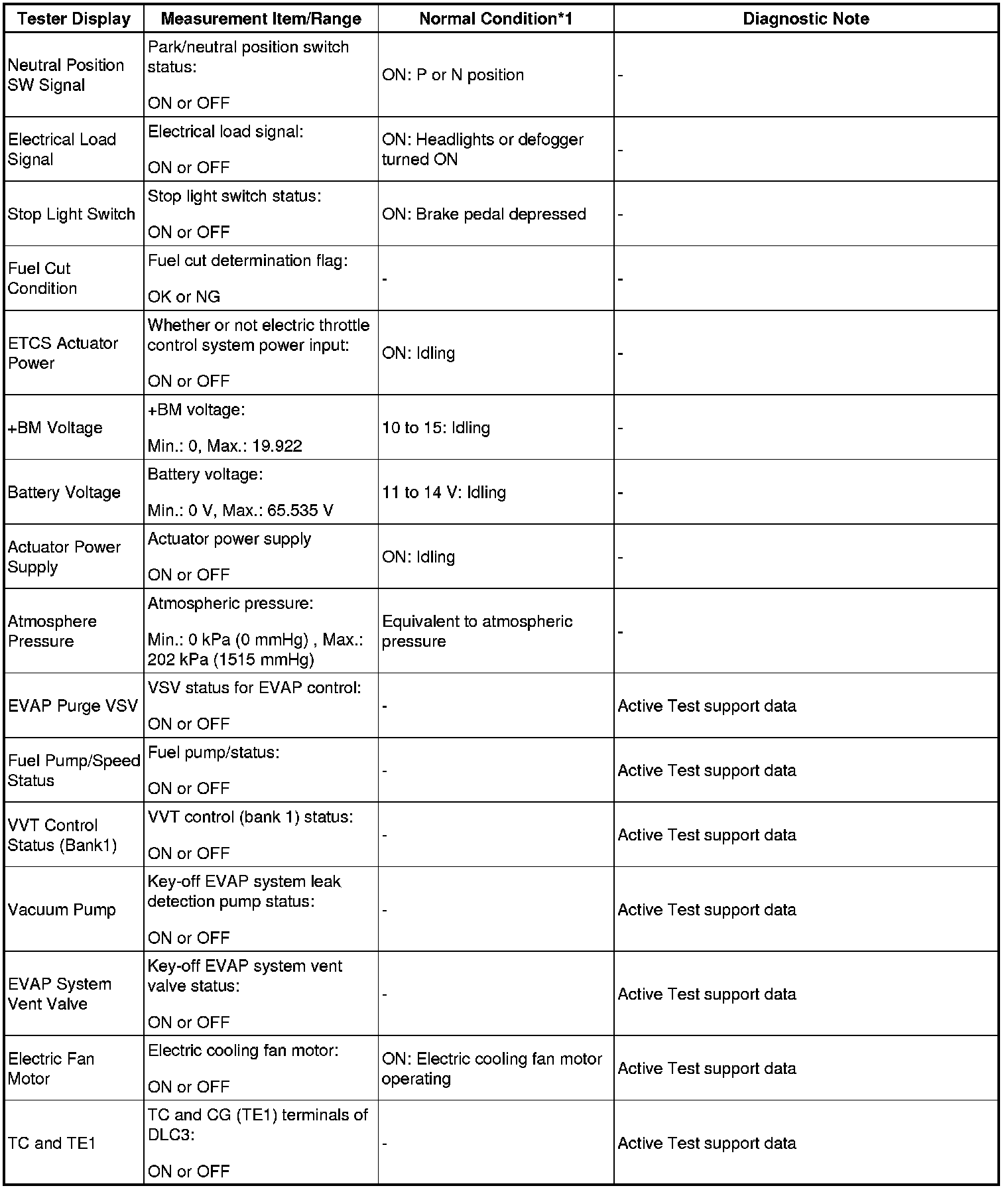 - *1: If no idling conditions are specified, the shift lever should be in N or P, and the A/C switch and all accessory switches should be off.