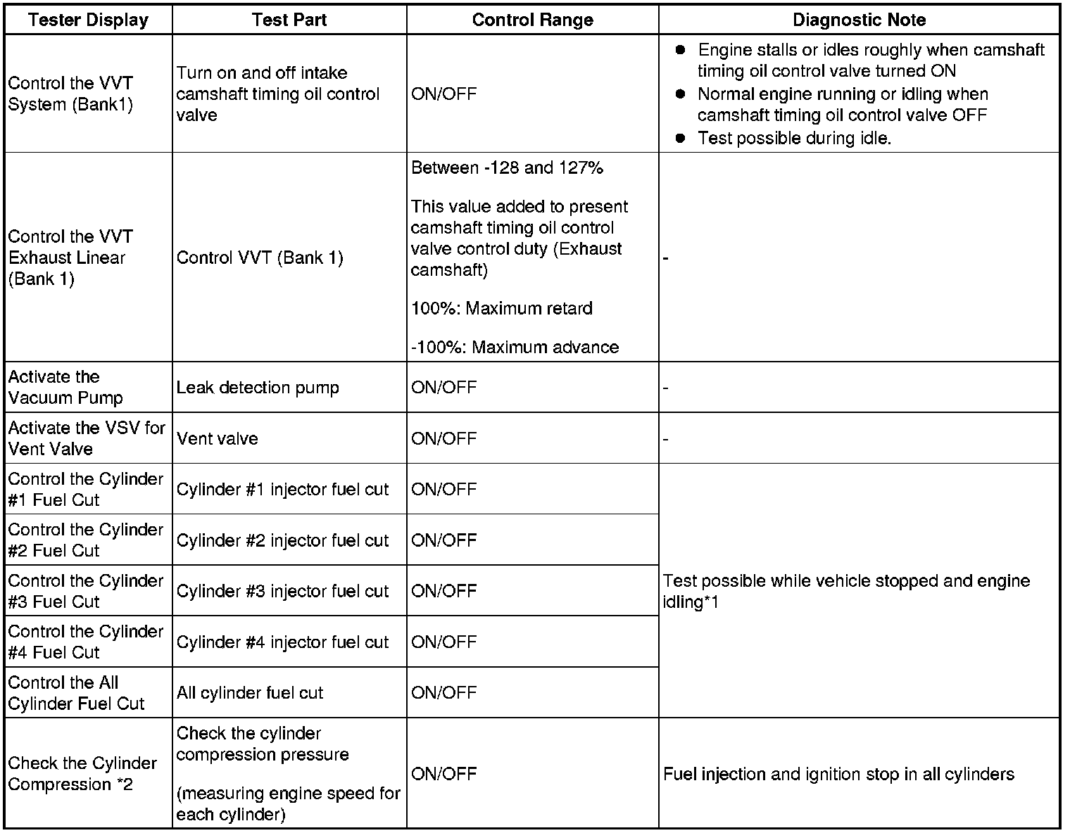 - *2: Values are only displayed when performing the Active Tests: Control the VVT Linear (Bank1). For other Active Tests, the value will be 0.