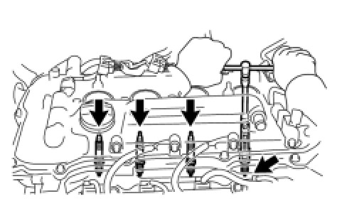 (a) Using a 14 mm spark plug wrench, install the 4 spark plugs.