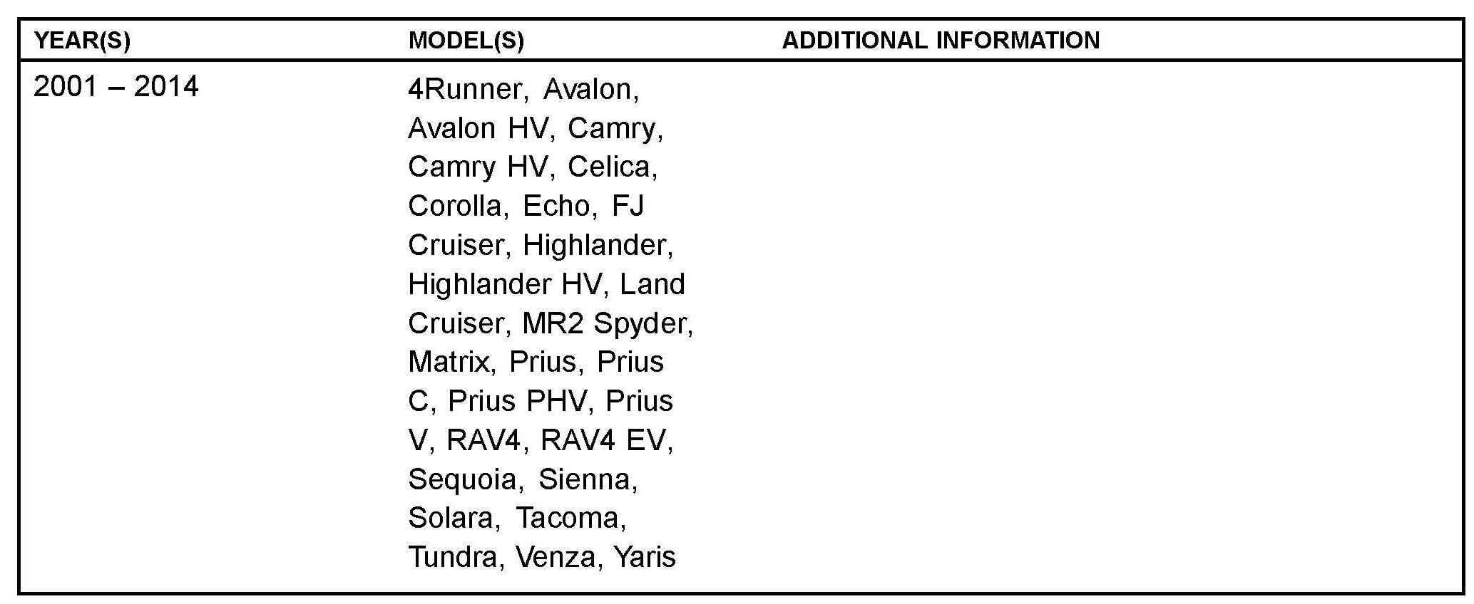 ^ Applicability has been updated to include 2014 model year Toyota vehicles.