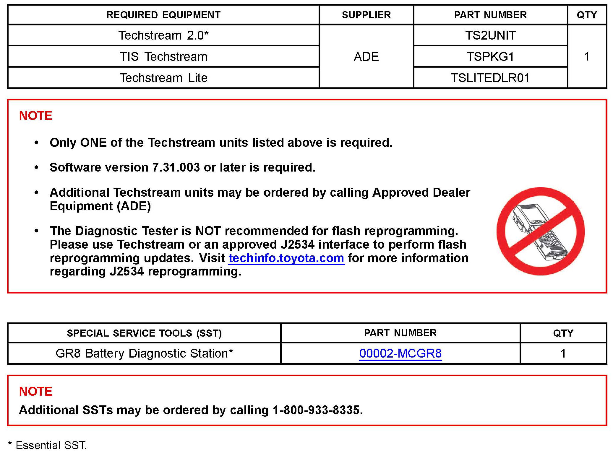 ^ If the battery's state of charge or capacity are in question, test with SST. No. 00002-V8150-KIT "Digital Battery Analyze," and follow Service Bulletin No. PG001-06, "Battery Maintenance for In-Stock Vehicles & Pre-Delivery", or the appropriate "Maintenance for HV & Auxiliary Batteries" Service Bulletin.