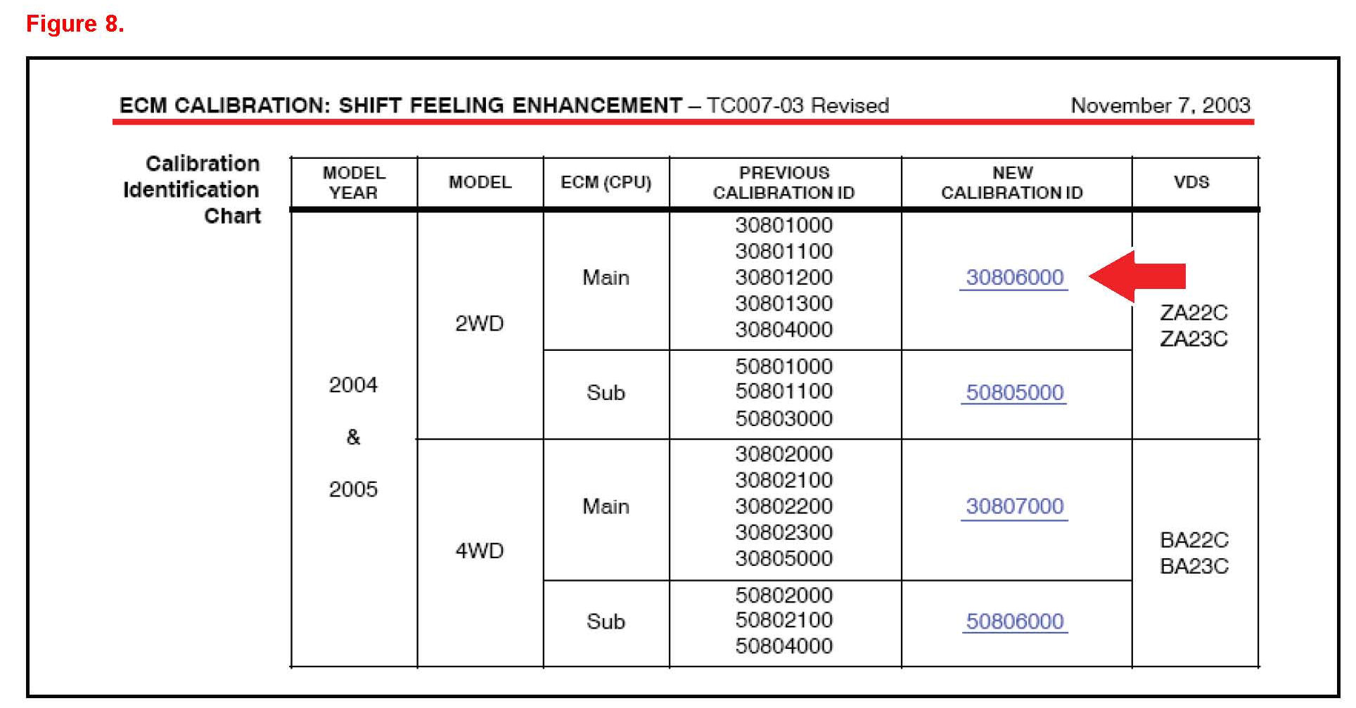 A. After reviewing the procedures outlined in the selected Service Bulletin, click the appropriate calibration ID link by matching the vehicle's current calibration ID to the Previous Calibration ID in the Calibration Identification Chart.