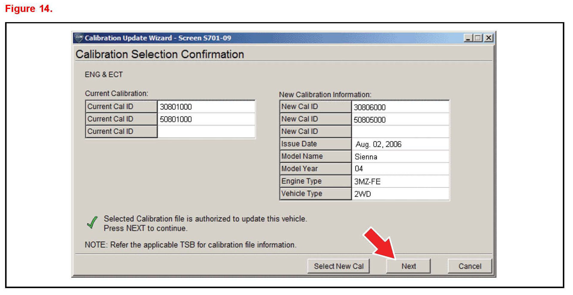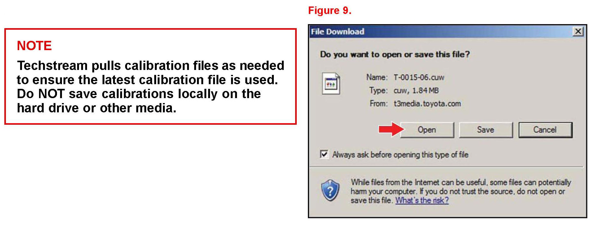 Techstream will automatically search TIS for the appropriate Service Bulletin using the current Calibration ID from the vehicle. Calibration file links can be found embedded in the corresponding Service Bulletin.