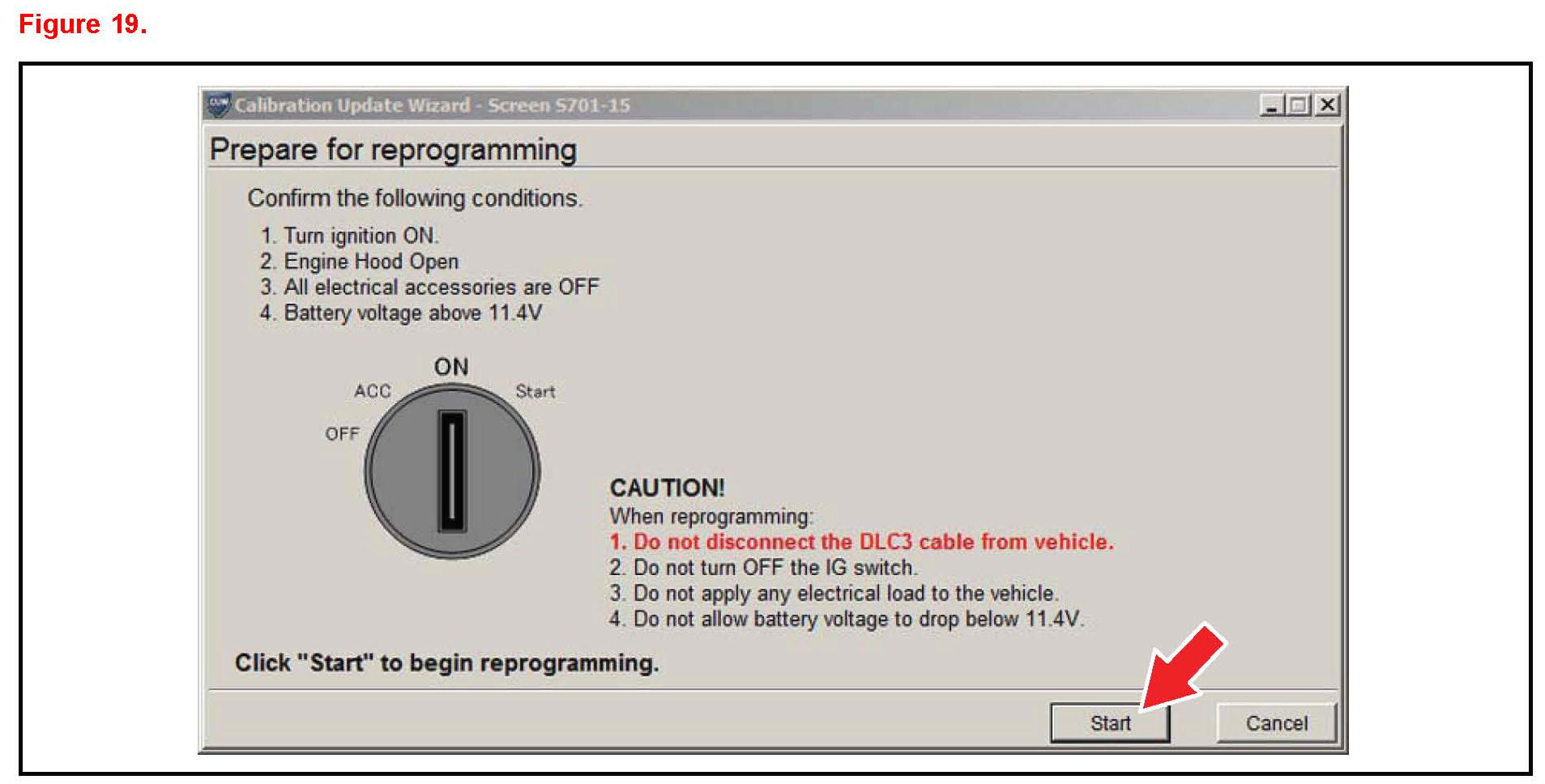 ^ Turn OFF all vehicle accessories (e.g. audio system, A/C, interior lights, DRL, etc.). Do NOT add to or significantly change the vehicle's electrical load while reprogramming.