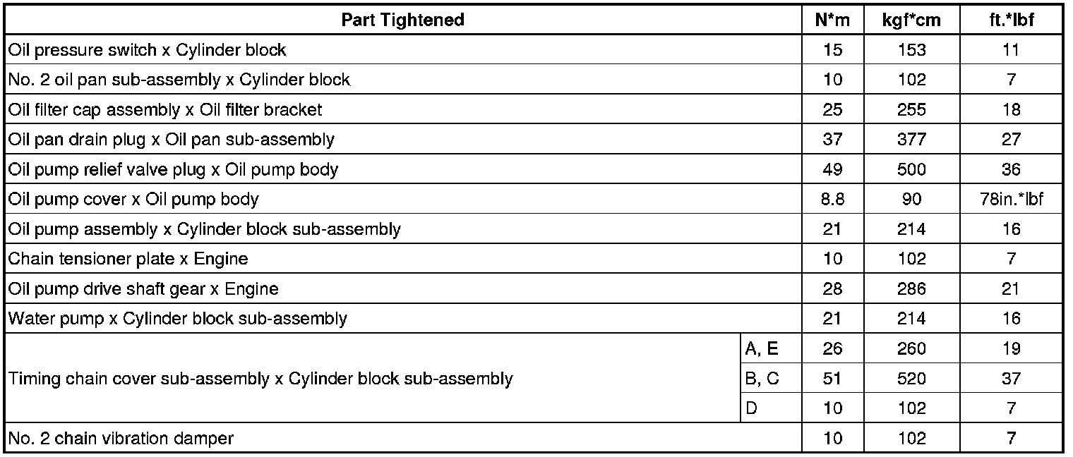 SPECIFICATIONS: 2ZR-FE LUBRICATION: TORQUE SPECIFICATIONS