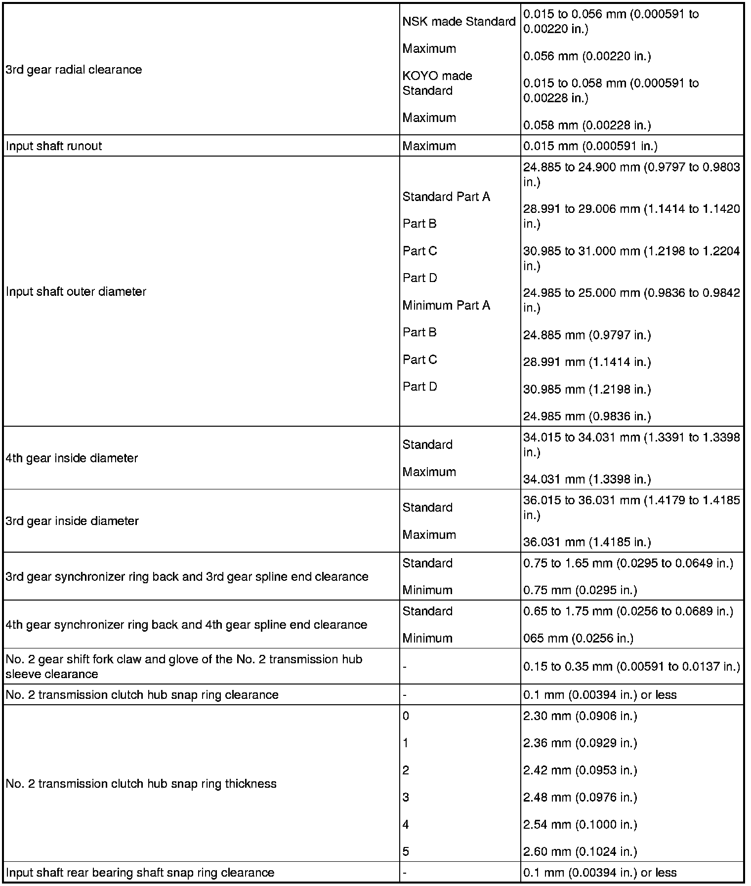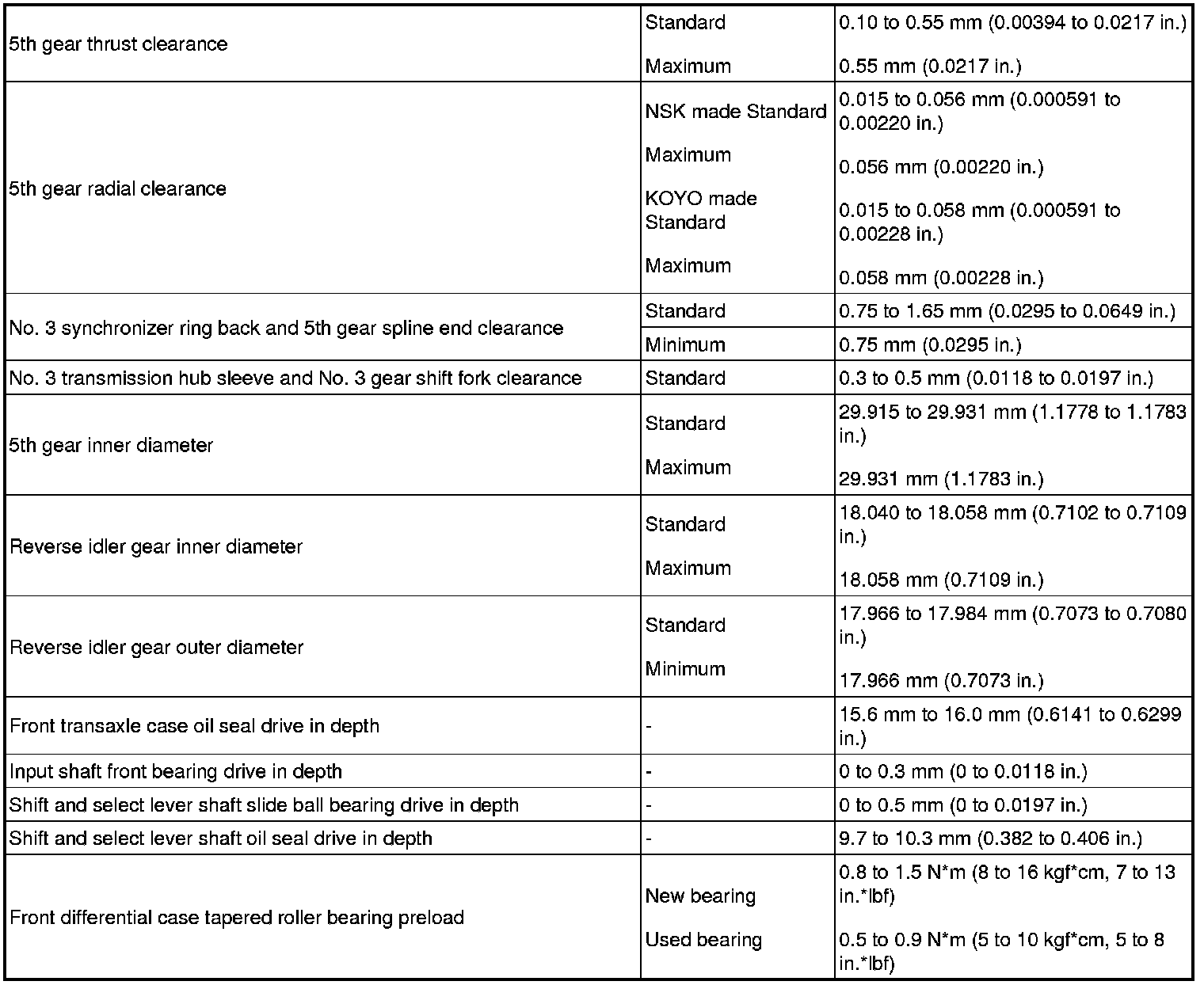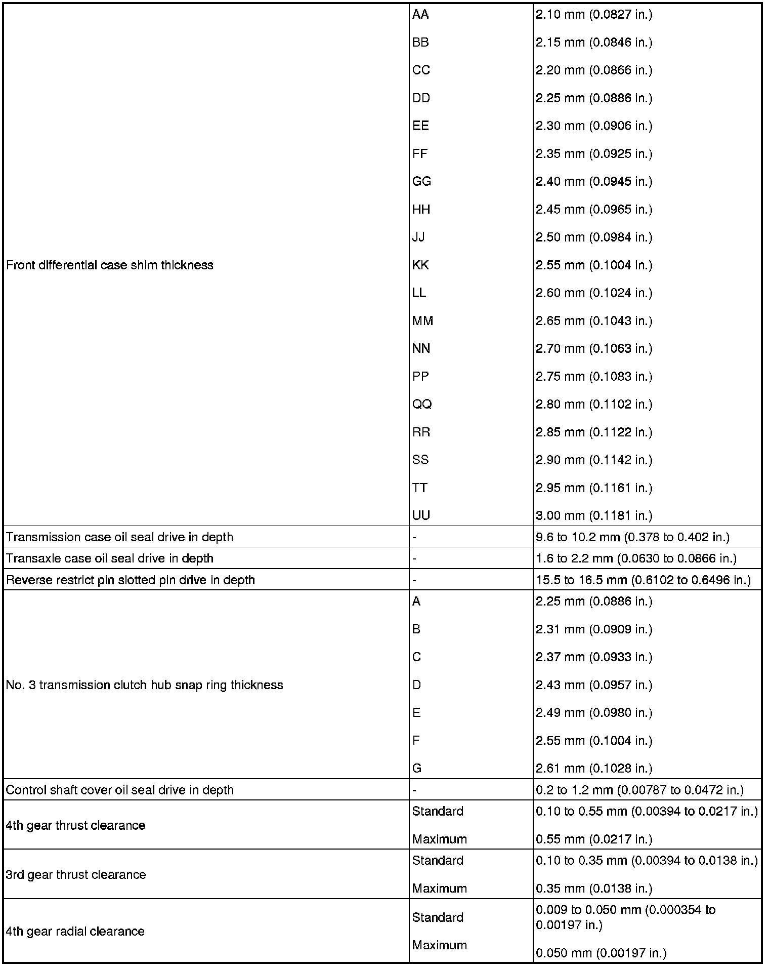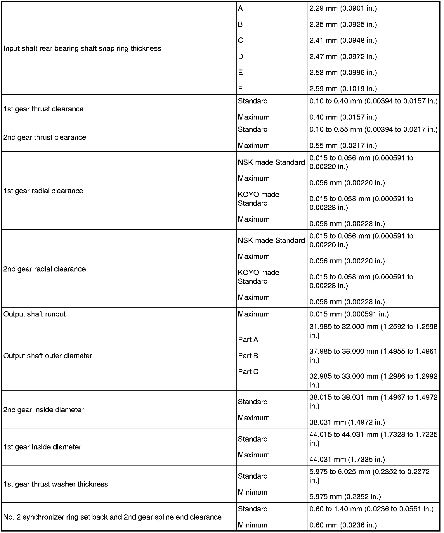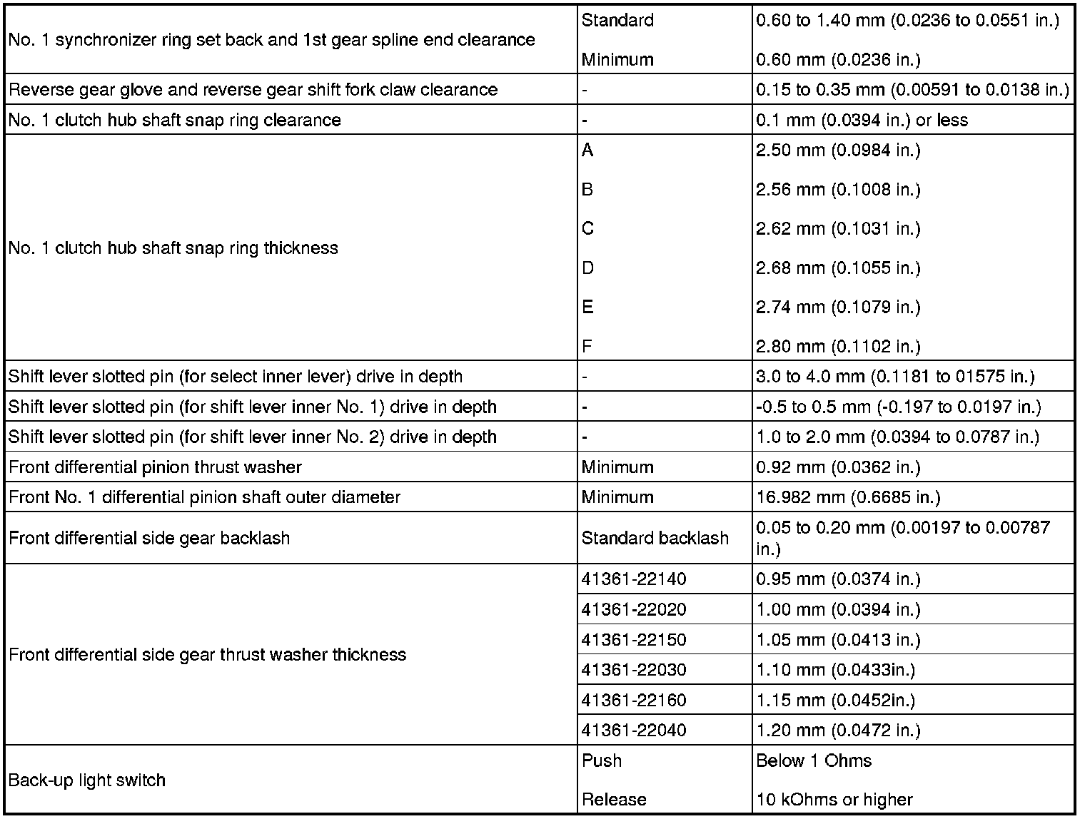 SPECIFICATIONS: C59 MANUAL TRANSMISSION / TRANSAXLE: SERVICE DATA
